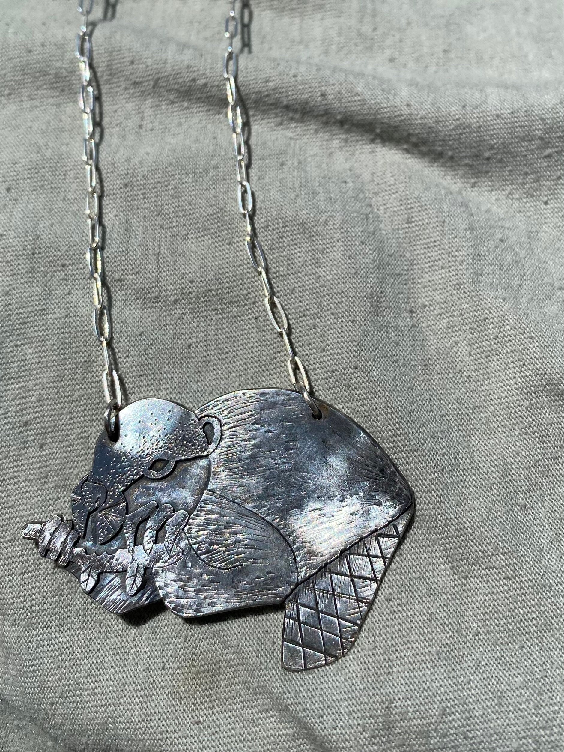 Beavers are a keystone species, meaning they play a key role in the health ecosystems. This country had many beavers before we wiped most of them out and I believe this has made an impact on the environment. My friends at the nonprofit E3ecologic.org are studying beavers, restoring their habitats, and will be bringing beavers back to the San Luis Valley in Colorado. You can learn more about beavers through their website. They also do many other land stewardship projects and I am honored to support them. A portion of the proceeds from these pendants will be donated to E3ecologic. These are made solely from sterling silver and I crafted them with my hands. Made to order. Join me in supporting E3ecologics efforts.
